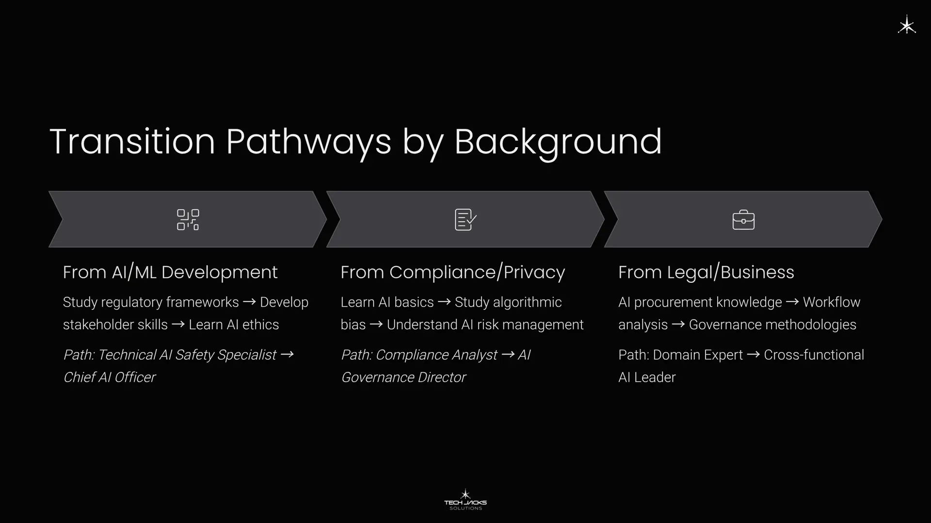 - Target roles: AI Compliance Officer → AI Governance Policy Lead → Chief AI Governance Officer