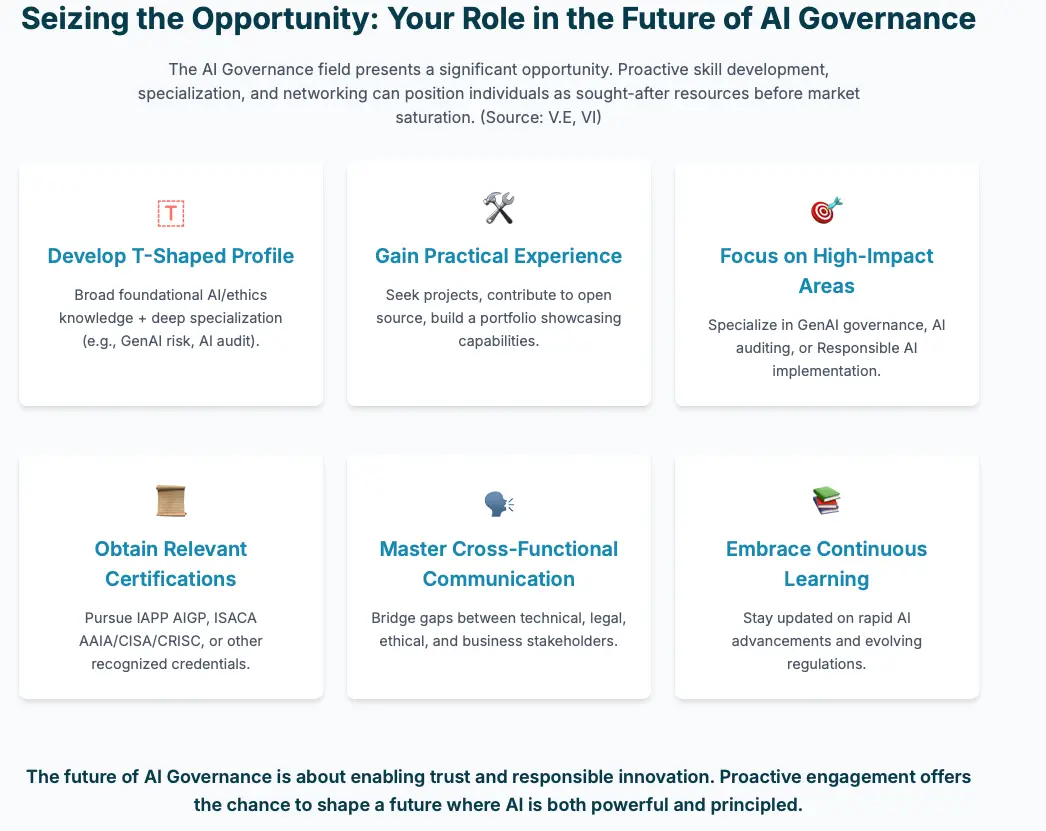 AI governance represents a genuine career opportunity. The field is growing. The work matters. The skills are learnable.