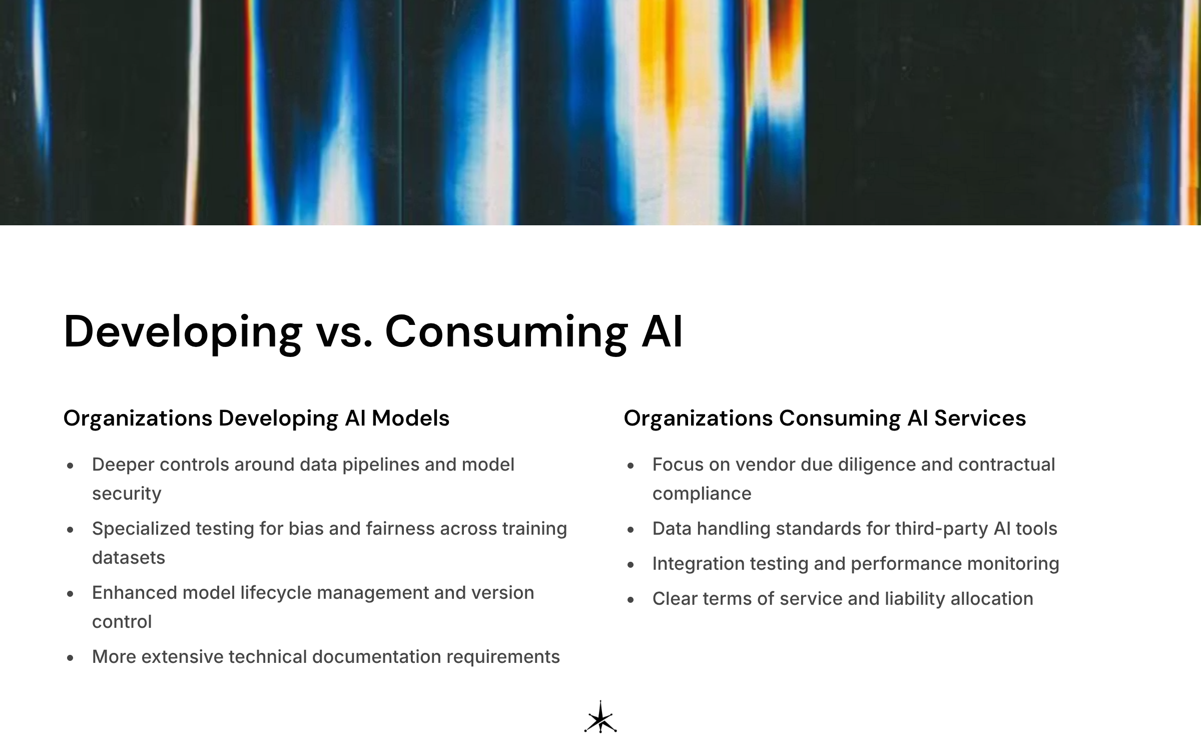 - Continuous, iterative risk management throughout AI system lifecycle