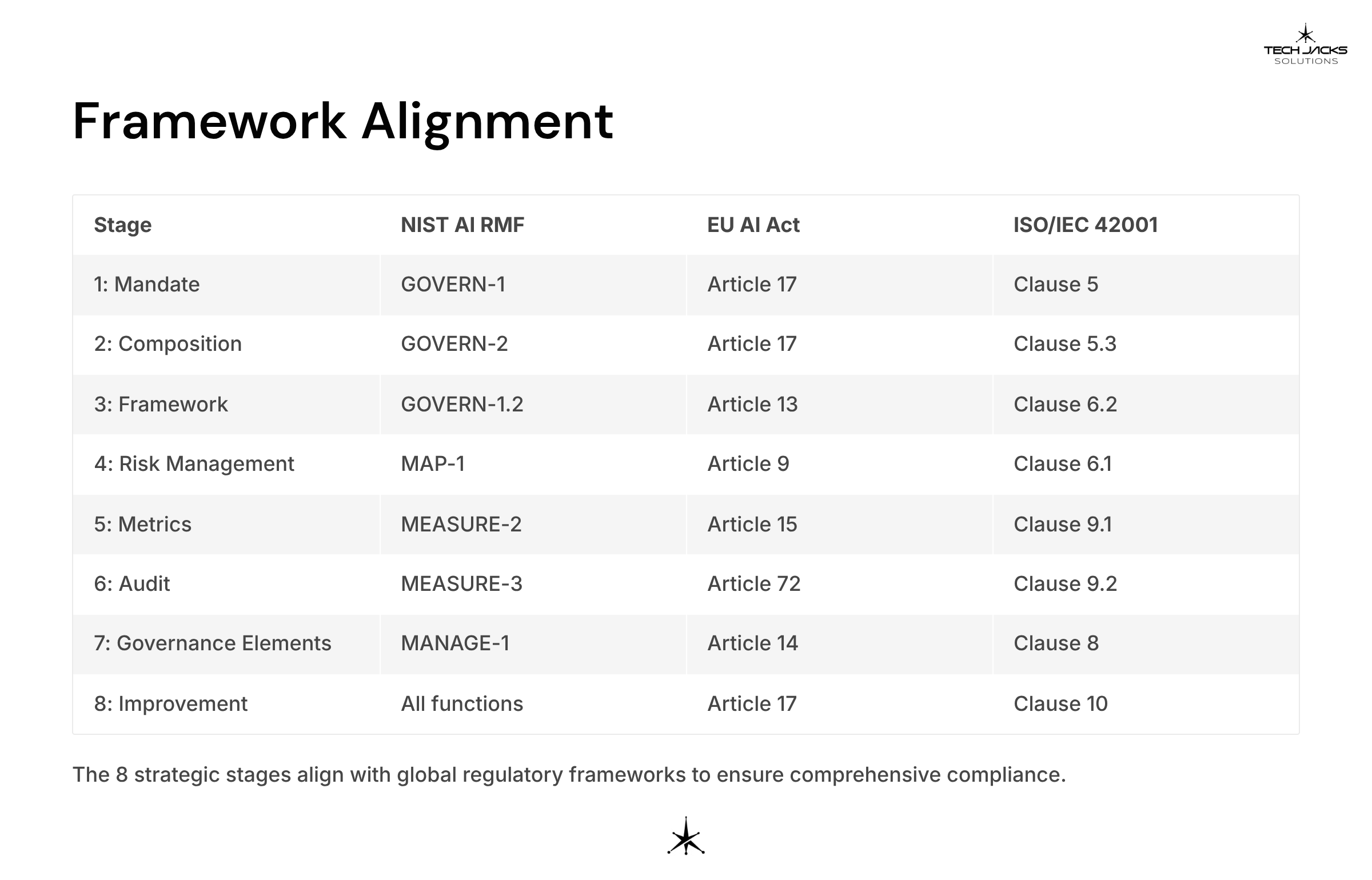 | ISO/IEC 42001 | Clause 5.3: Organizational roles | Assign responsibilities and authorities for AIMS roles relevant to AI governance |