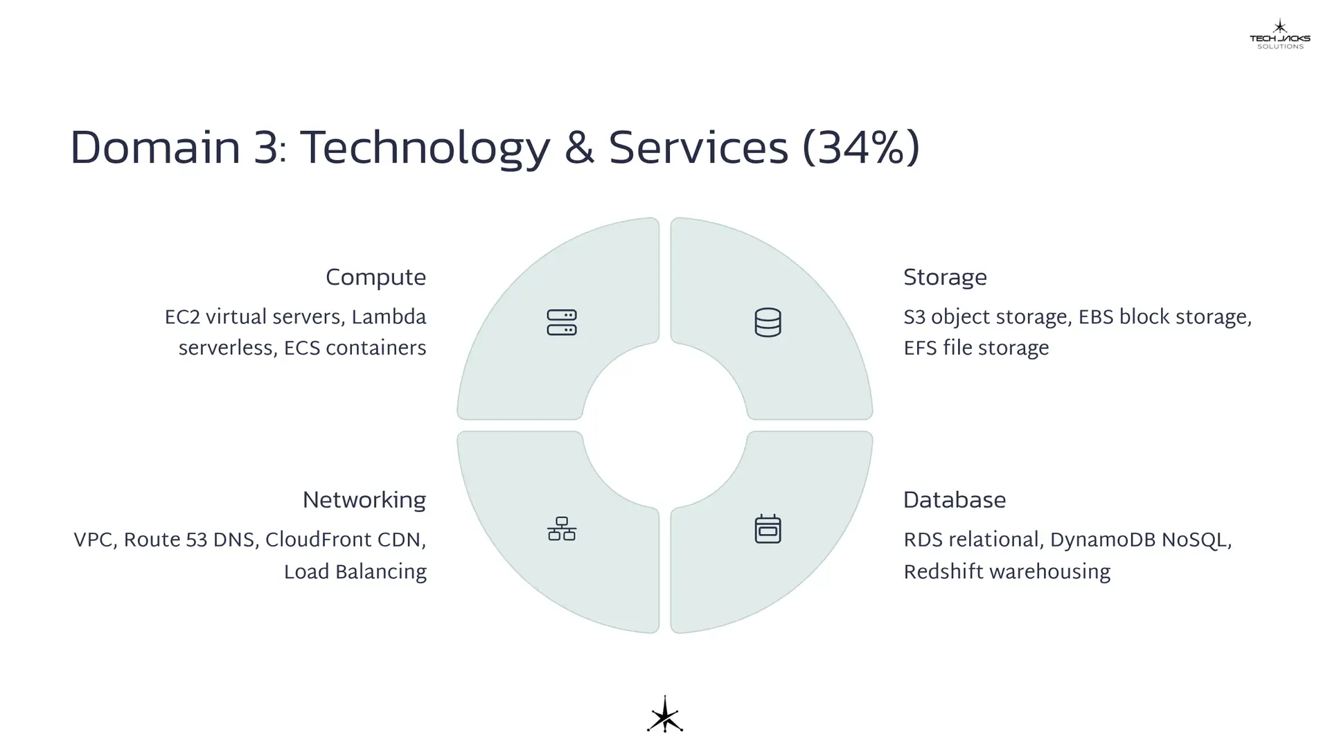 Practical Application: This domain provides essential AWS vocabulary. A certified professional can identify appropriate AWS services for common business requirements. For instance, they differentiate when to use S3 for object storage versus EBS for block storage attached to EC2 instances. This “speaking AWS” ability is vital for effective communication in project teams.