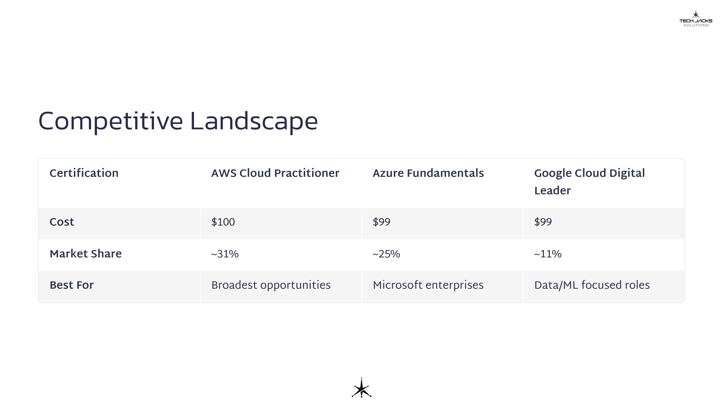 - Skill Differentiation: Provides verifiable cloud literacy in market where 87% of technology leaders struggle to find skilled talent