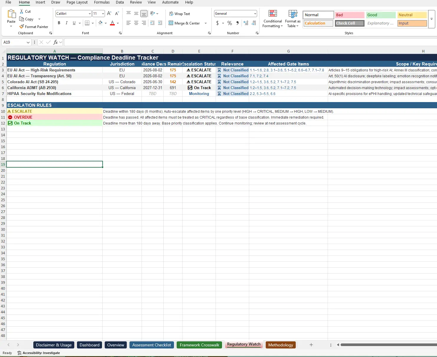 Our templates are updated regularly (latest versions from August 2025). Customers receive free updates for major regulatory changes within 24 months of purchase. We monitor EU AI Act, NIST updates, and other key regulations continuously.