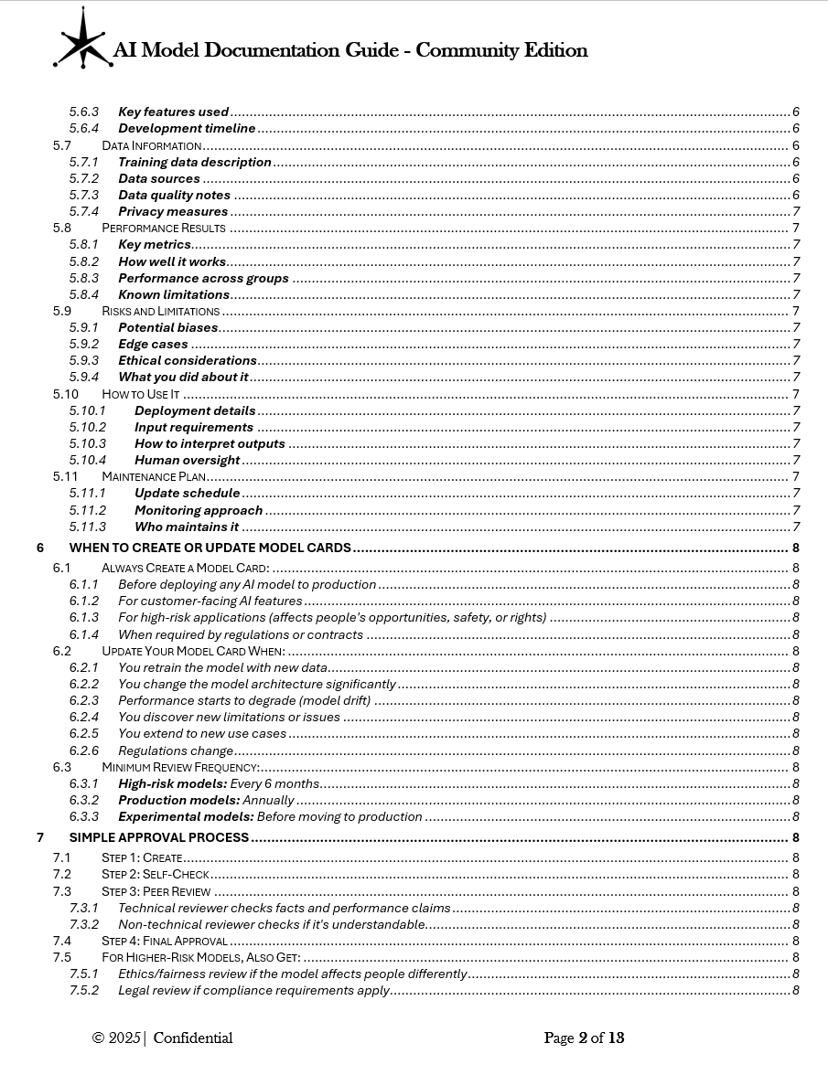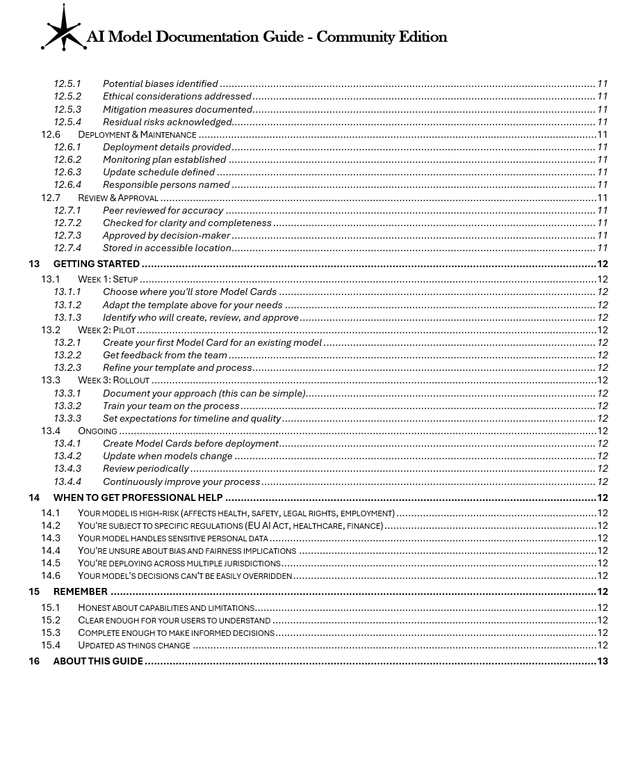 - Small to mid-size organizations establishing AI documentation practices without large compliance teams