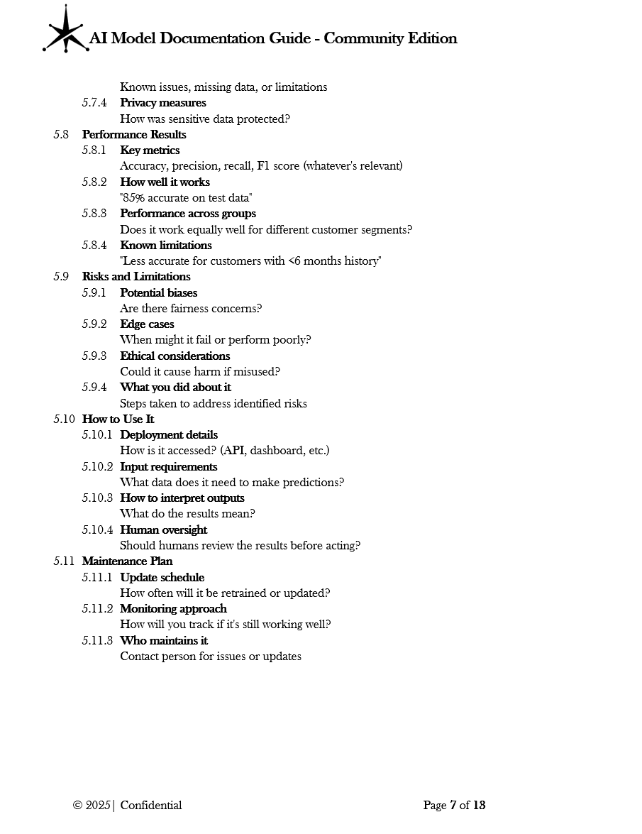 - ✓ Includes templates for documenting model purpose, performance, and limitations