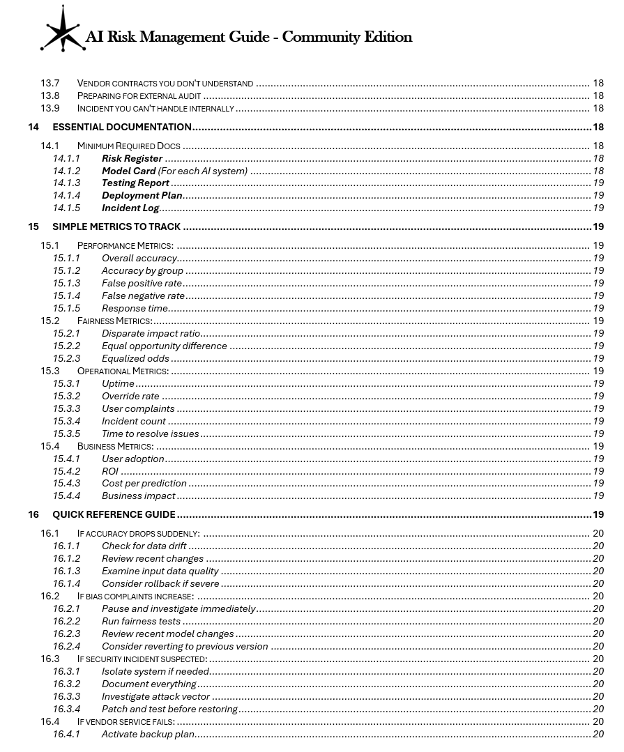 ✓ Contains decision trees and quick reference guides for common AI risk scenarios
